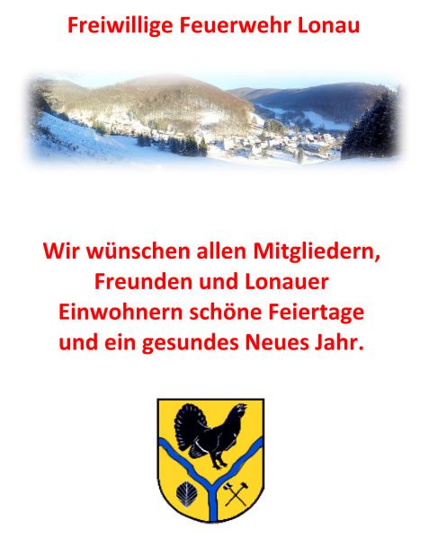 Die Freiwillige Feuerwehr Lonau wünscht frohe Weihnachten und ein gesundes neues Jahr