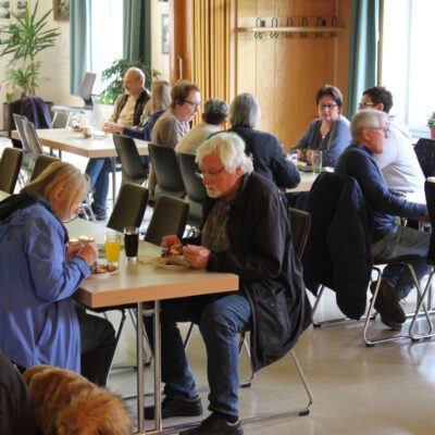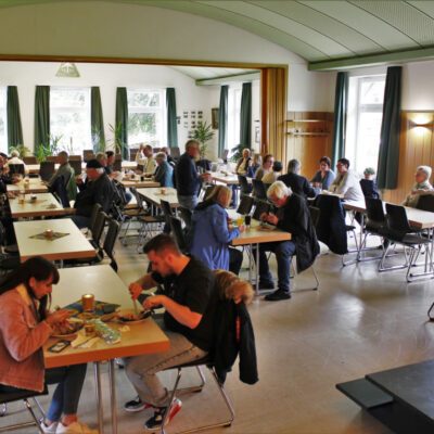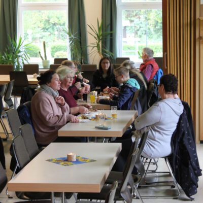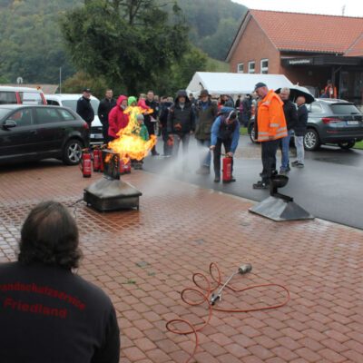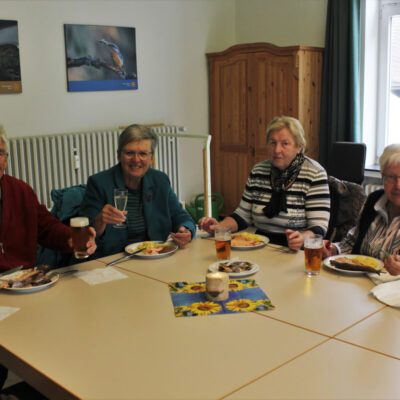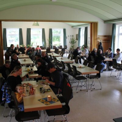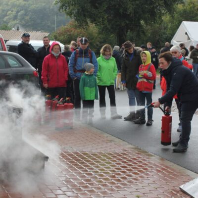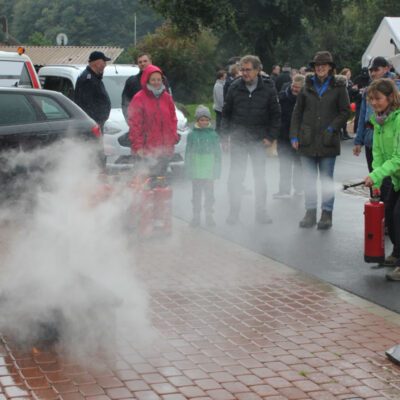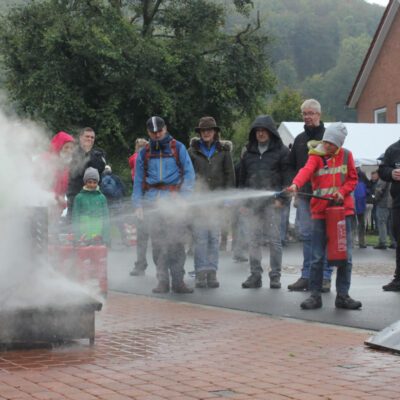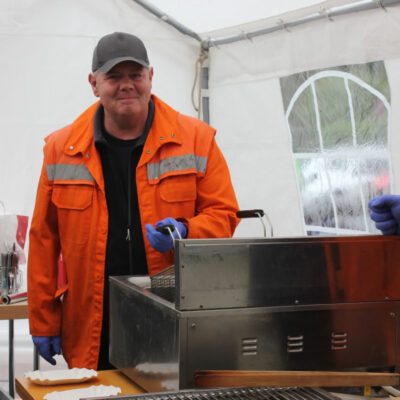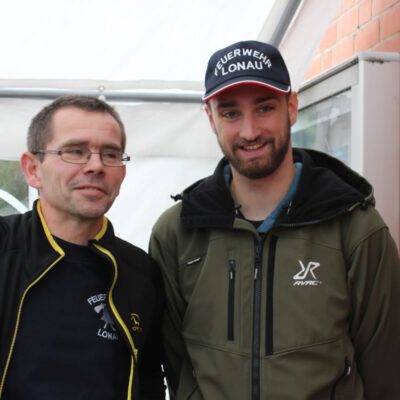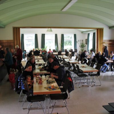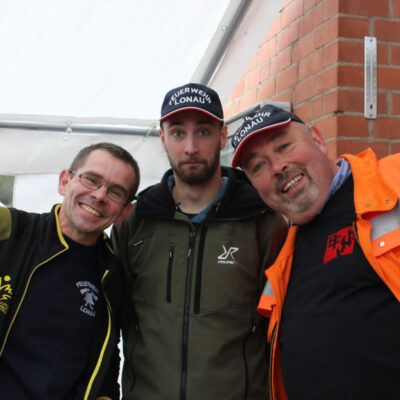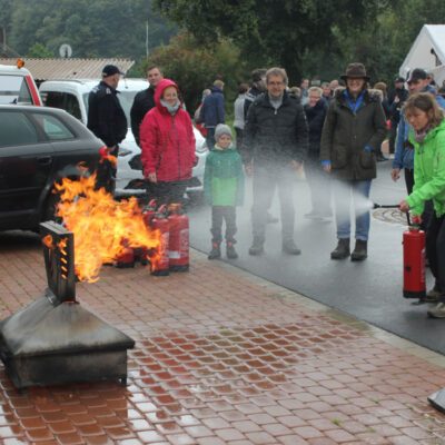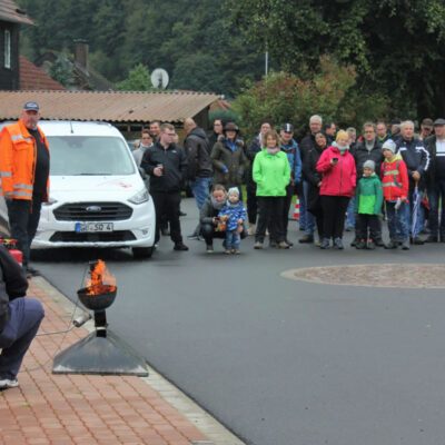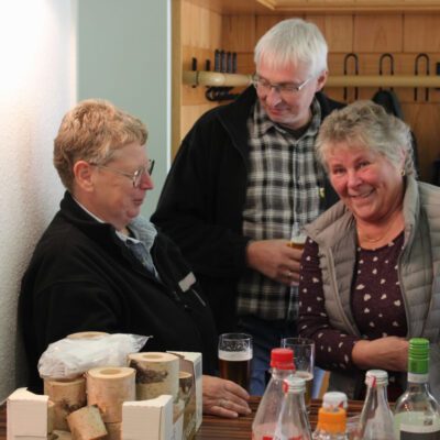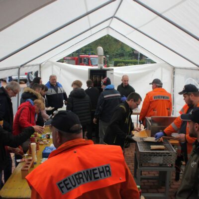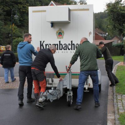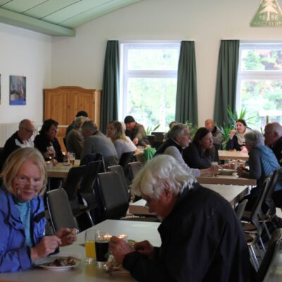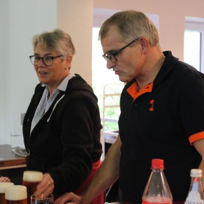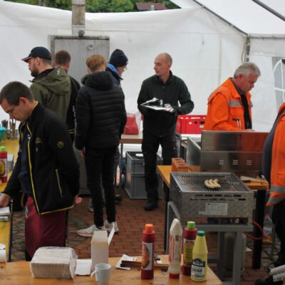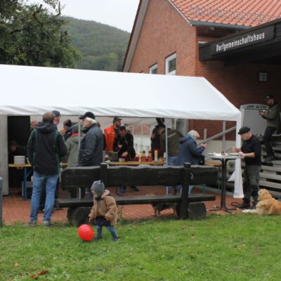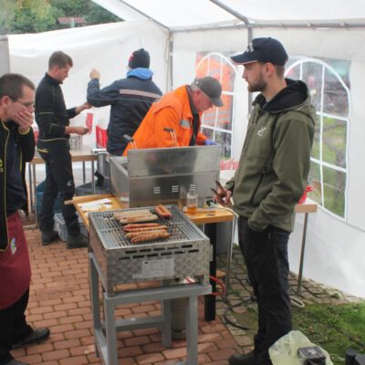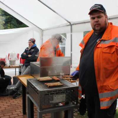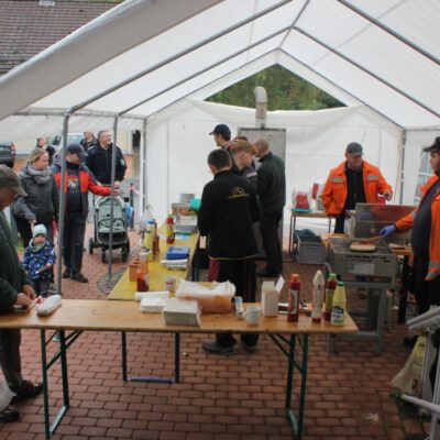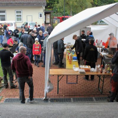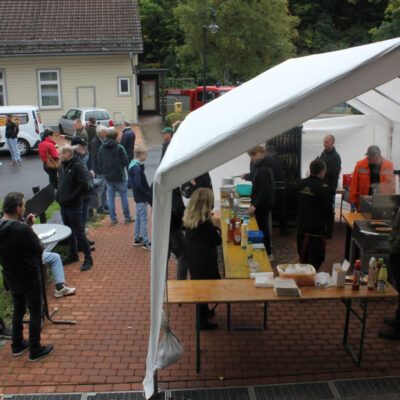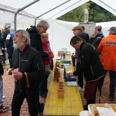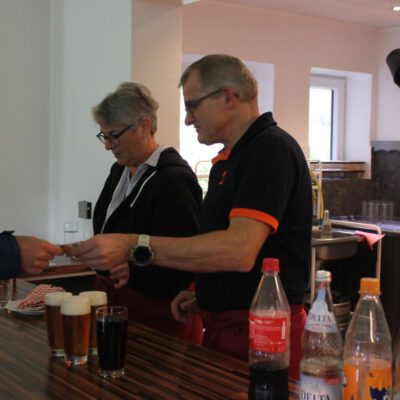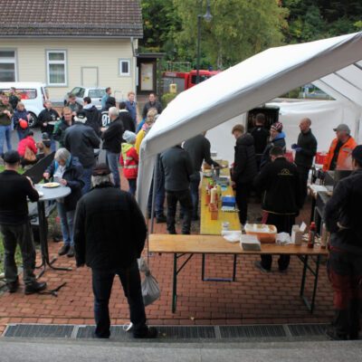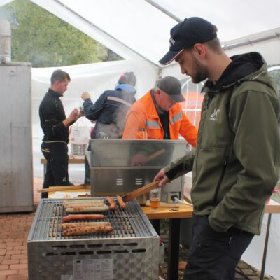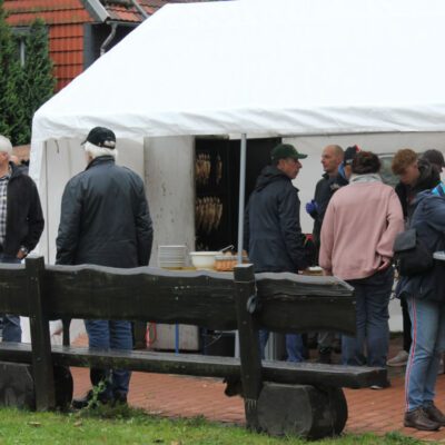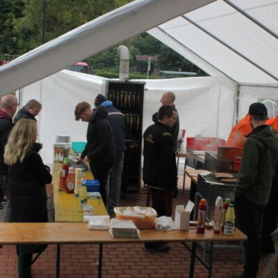 Ab 12:00 Uhr gab es frisch geräucherte Forellen direkt aus dem Smoker, wahlweise mit leckerem Kartoffelsalat, oder auch frisch gegrillte Bratwürste und Krakauer sowie leckere Pommes. Für das Grillen übernahm wie immer die Freiwillige Feuerwehr Lonau das Kommando. Hinter der Theke im DGH standen die freundlichen Helfer:innen der Bürgergemeinschaft und verkauften Bier, Kaffee und Kuchen.