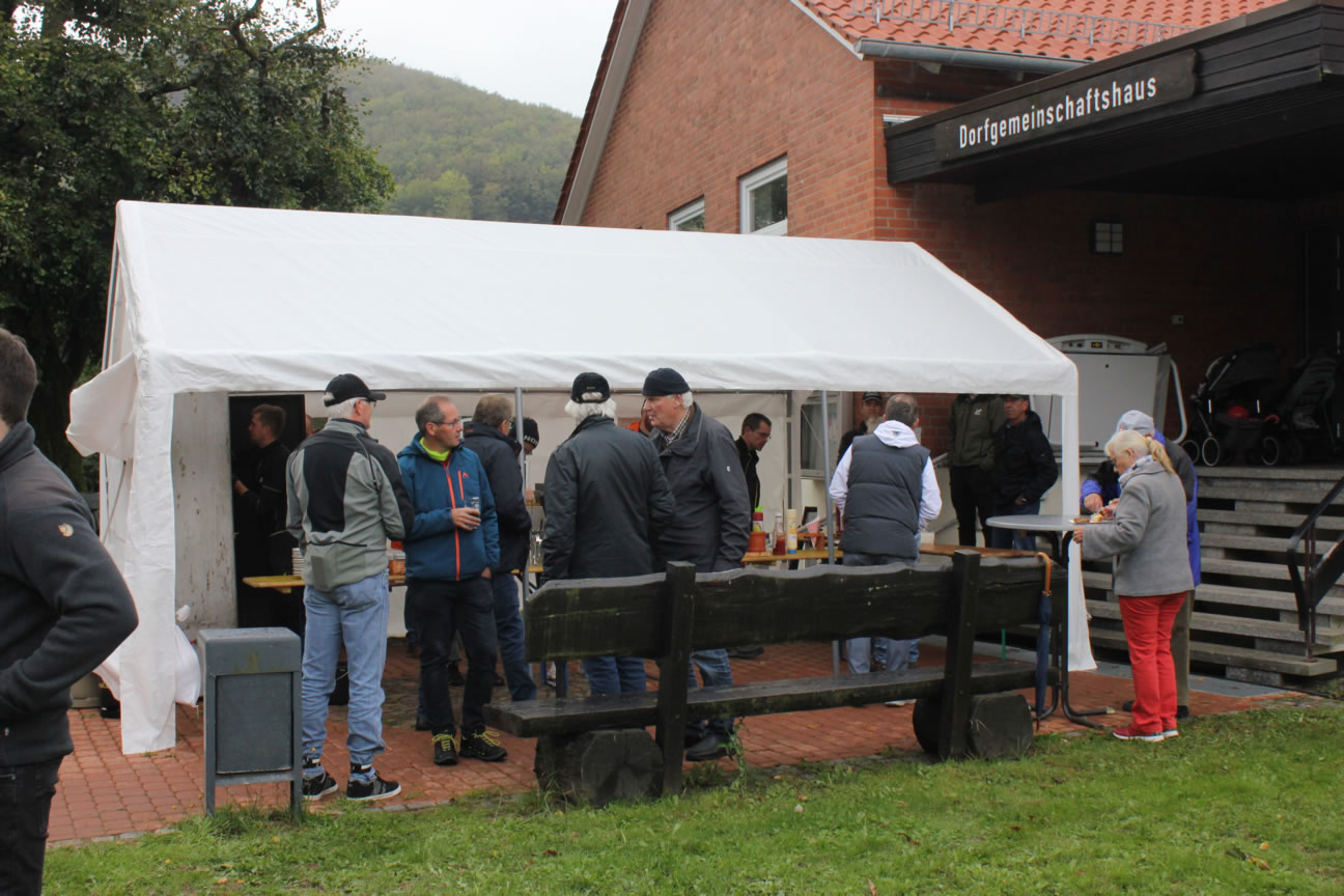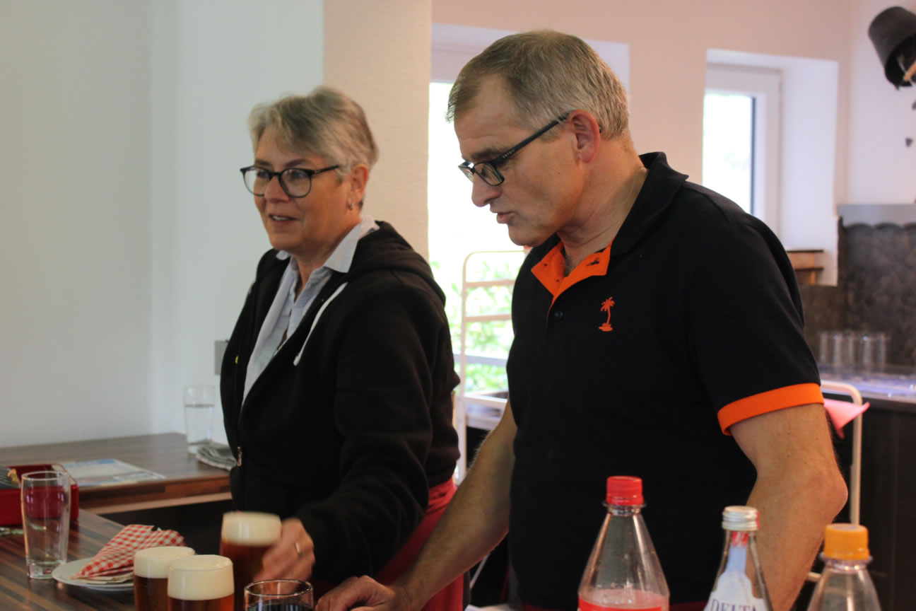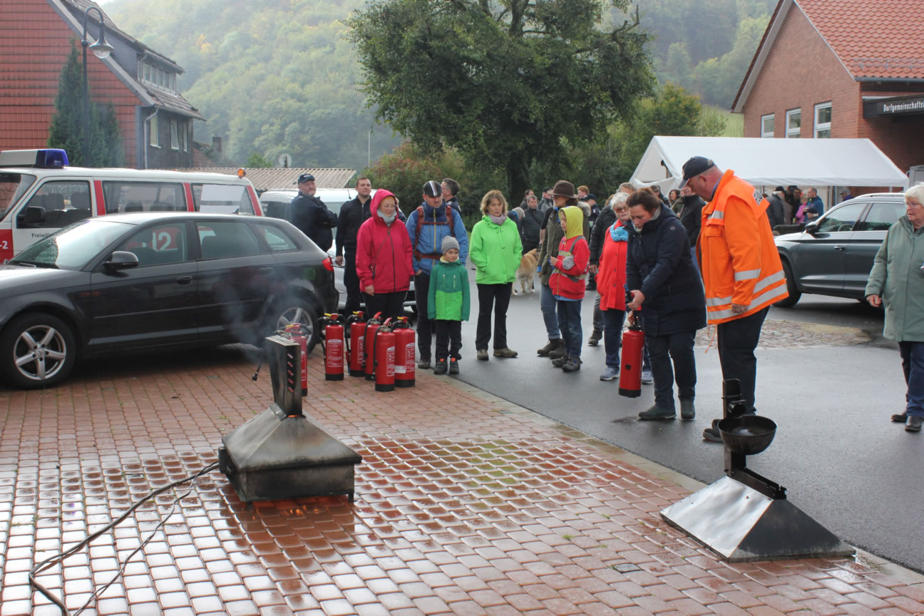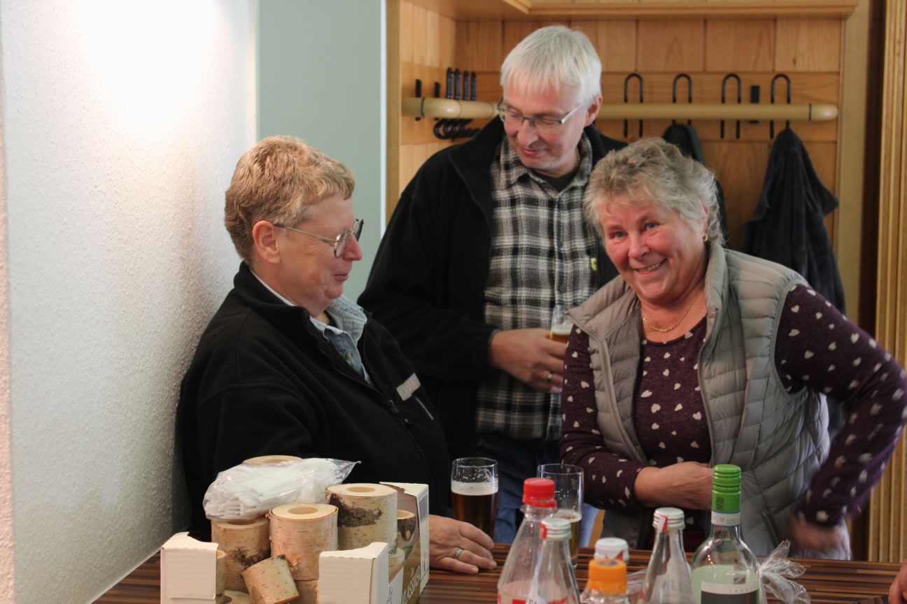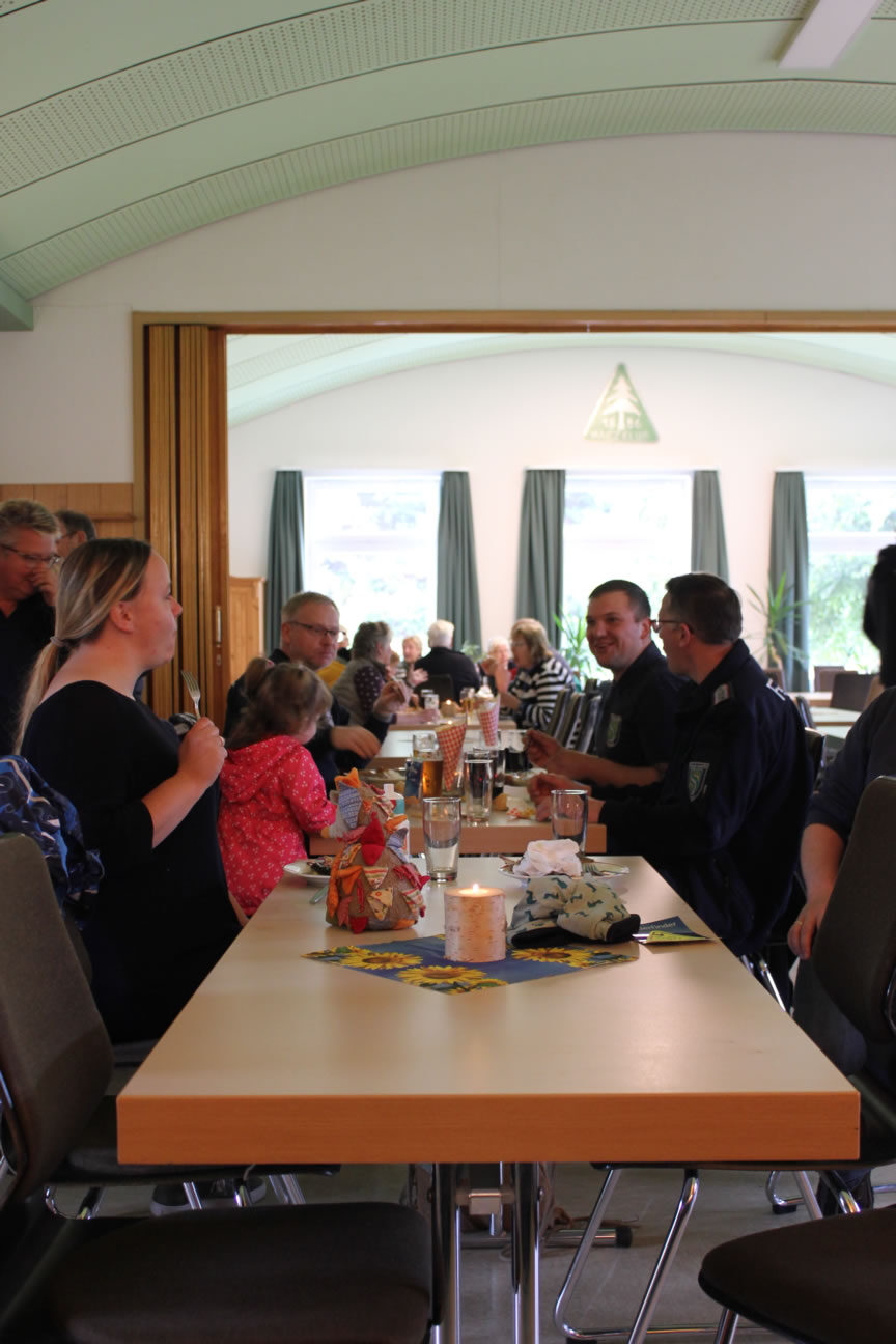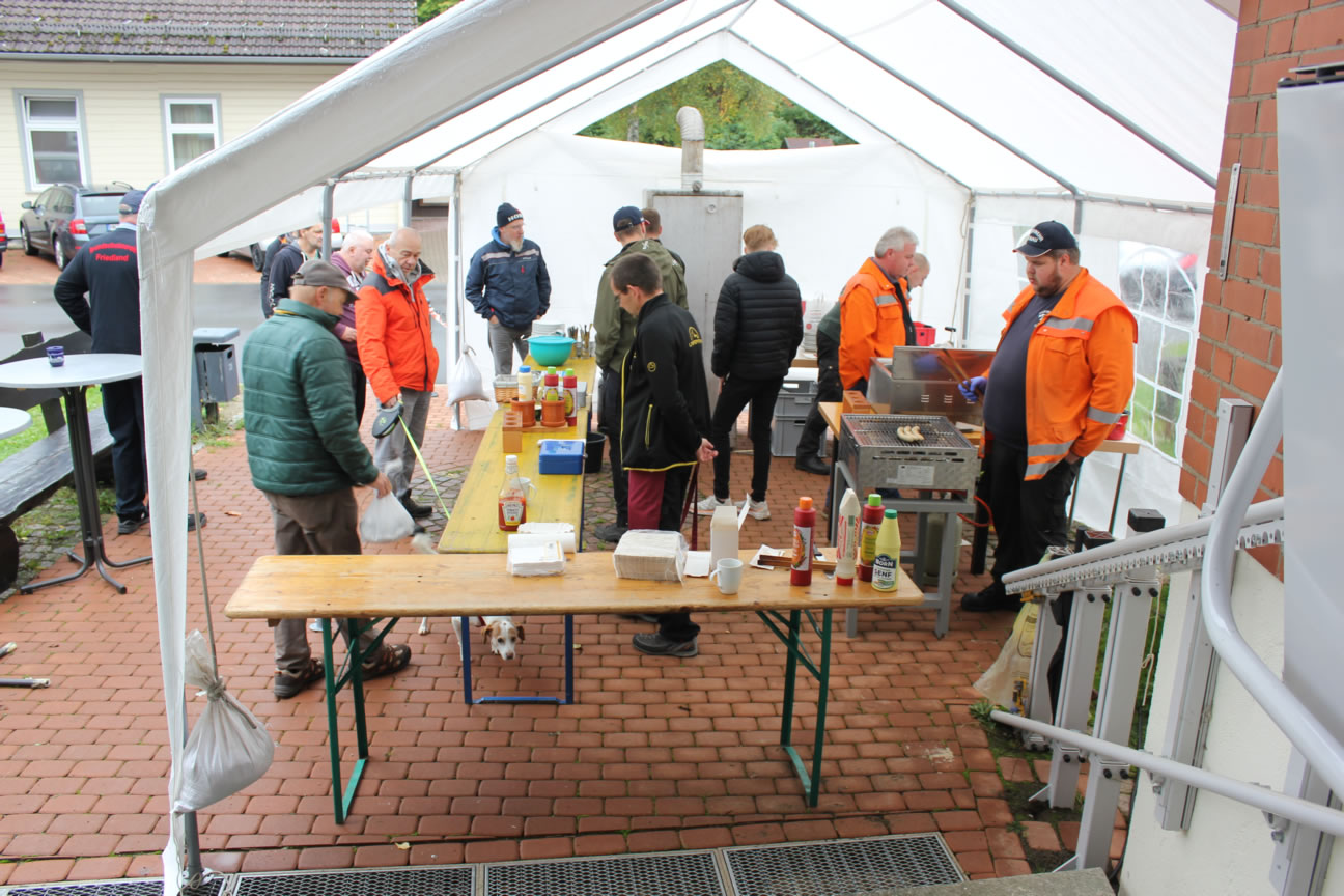 Ab 12:00 Uhr gab es frisch geräucherte Forellen direkt aus dem Smoker, wahlweise mit leckerem Kartoffelsalat, oder auch frisch gegrillte Bratwürste und Krakauer sowie leckere Pommes. Für das Grillen übernahm wie immer die Freiwillige Feuerwehr Lonau das Kommando. Hinter der Theke im DGH standen die freundlichen Helfer:innen der Bürgergemeinschaft und verkauften Bier, Kaffee und Kuchen.