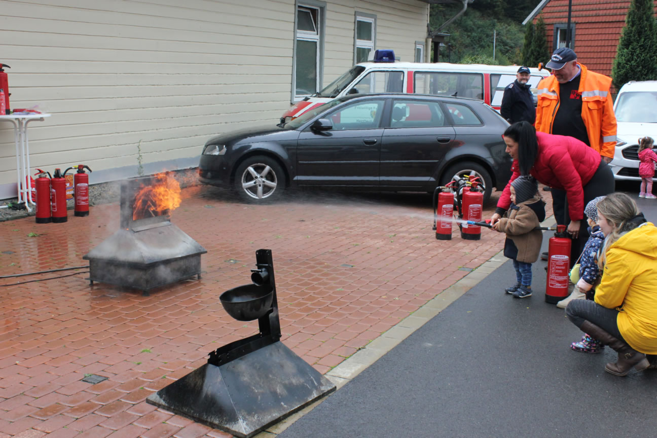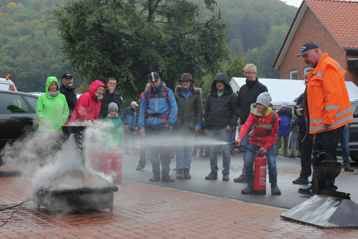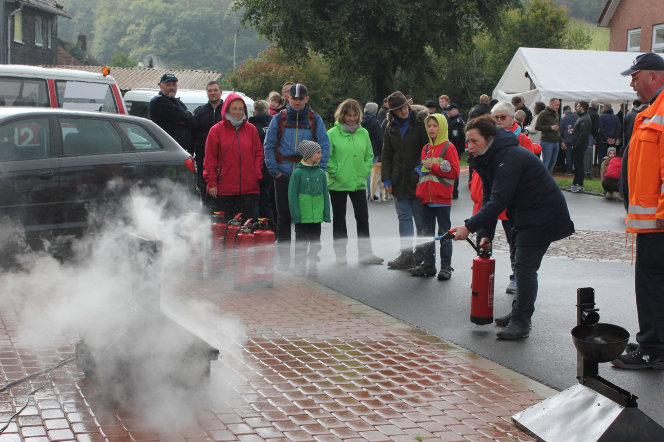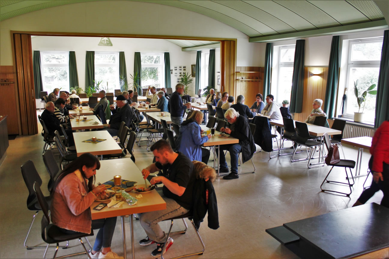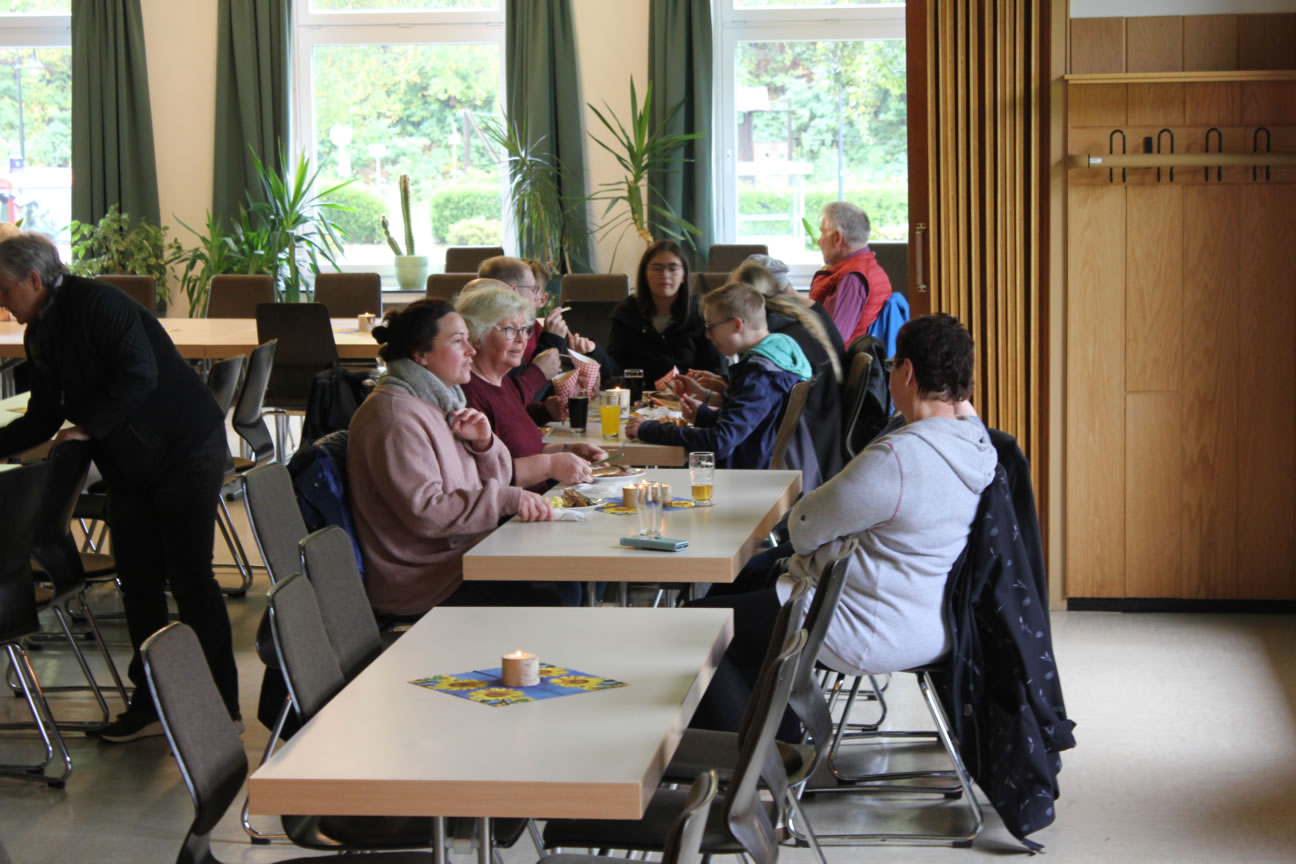 Ab 12:00 Uhr gab es frisch geräucherte Forellen direkt aus dem Smoker, wahlweise mit leckerem Kartoffelsalat, oder auch frisch gegrillte Bratwürste und Krakauer sowie leckere Pommes. Für das Grillen übernahm wie immer die Freiwillige Feuerwehr Lonau das Kommando. Hinter der Theke im DGH standen die freundlichen Helfer:innen der Bürgergemeinschaft und verkauften Bier, Kaffee und Kuchen.