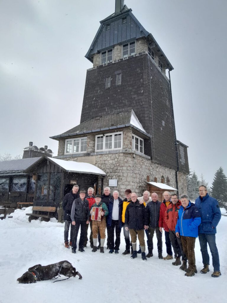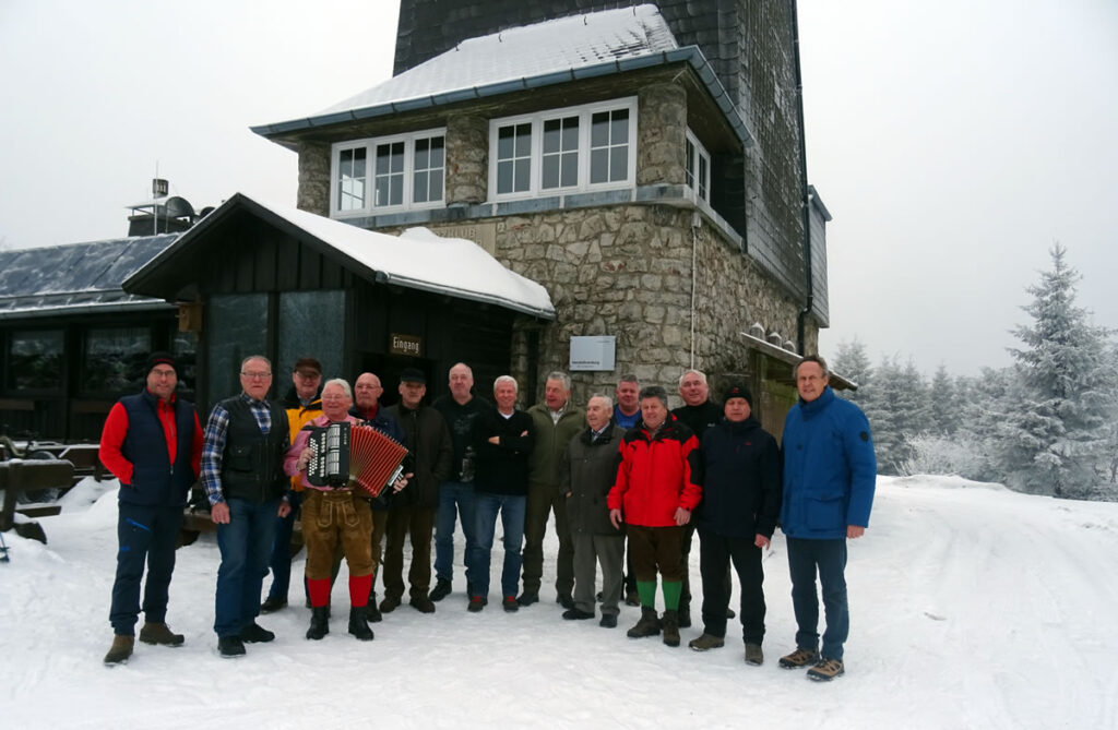 Zur 58. Wanderung auf die Hanskühnenburg machten sich, wie immer am letzten Freitag im Januar, 15 unentwegte Wanderkameraden zum Aufstieg zur Burg auf den Weg. Einzelne nicht mehr Gehfähige wurden durch den Wirt Dennis Singer freundlicherweise gefahren. Natürlich wurden auch unterwegs Stopps eingelegt, um den Flüssigkeitsverlust zu kompensieren.