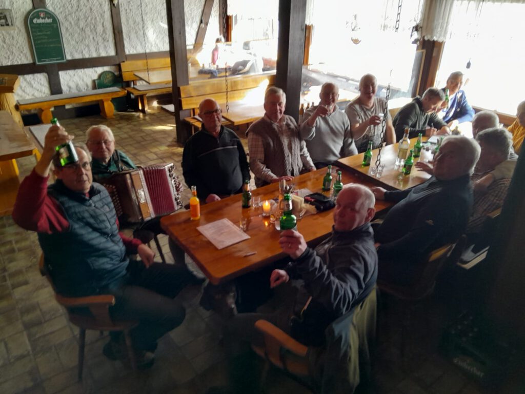 Gegen 15.00 Uhr blies der 1. Vorsitzende Friedel Grobecker zum Aufbruch ins Tal, wo in der „Quelle“ der gemütliche Abschluss mit den Ehefrauen stattfand.